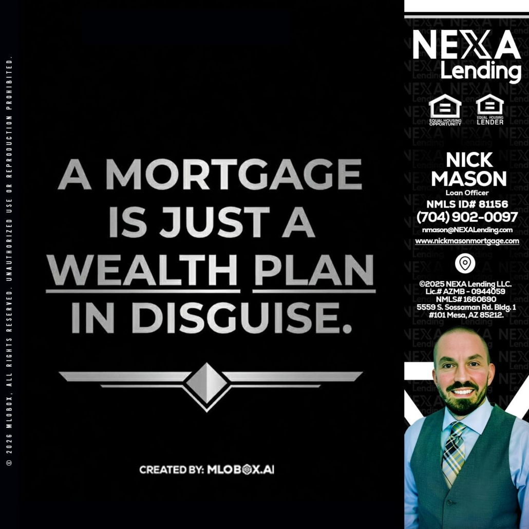 Hi, my name is Nick Mason. I’m a Loan Officer with NEXA Lending LLC., offering personalized mortgage solutions, fast customized quotes, great rates and service with integrity.