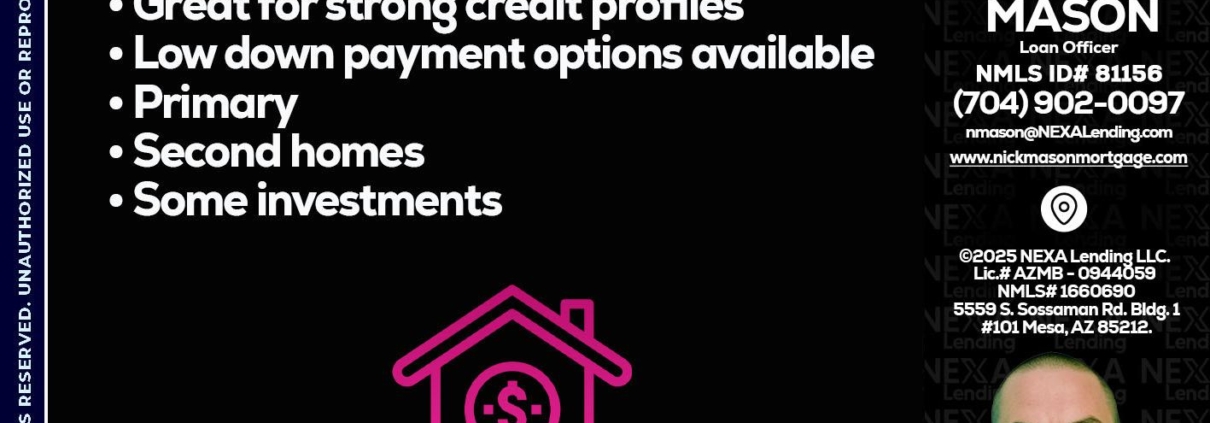 Hi, my name is Nick Mason. I’m a Loan Officer with NEXA Lending LLC., offering personalized mortgage solutions, fast customized quotes, great rates and service with integrity.