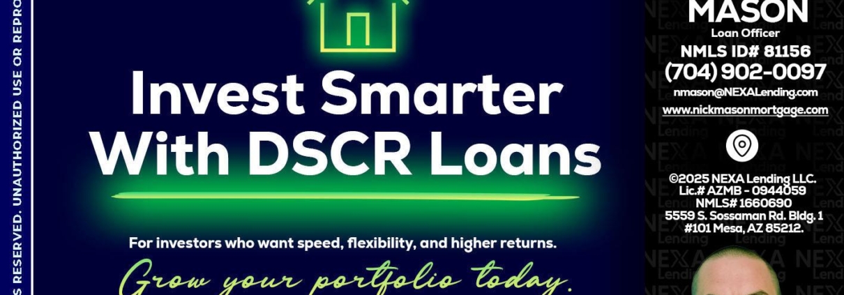 Hi, my name is Nick Mason. I’m a Loan Officer with NEXA Mortgage LLC., offering personalized mortgage solutions, fast customized quotes, great rates and service with integrity.