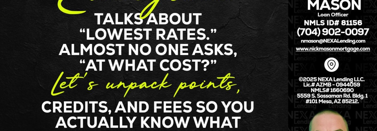 Hi, my name is Nick Mason. I’m a Loan Officer with NEXA Mortgage LLC., offering personalized mortgage solutions, fast customized quotes, great rates and service with integrity.