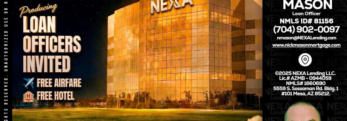 Hi, my name is Nick Mason. I’m a Loan Officer with NEXA Lending LLC., offering personalized mortgage solutions, fast customized quotes, great rates and service with integrity.