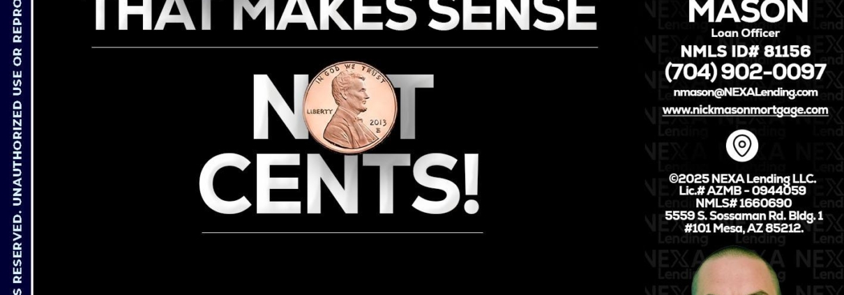 Hi, my name is Nick Mason. I’m a Loan Officer with NEXA Lending LLC., offering personalized mortgage solutions, fast customized quotes, great rates and service with integrity.
