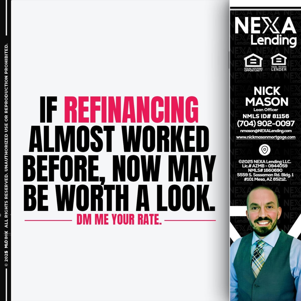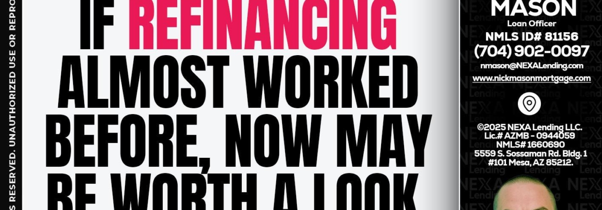 Hi, my name is Nick Mason. I’m a Loan Officer with NEXA Lending LLC., offering personalized mortgage solutions, fast customized quotes, great rates and service with integrity.