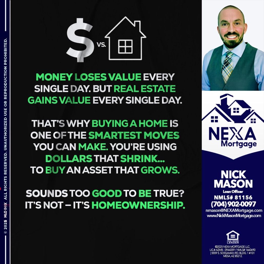 Hi, my name is Nick Mason. I’m a Loan Officer with NEXA Mortgage LLC., offering personalized mortgage solutions, fast customized quotes, great rates and service with integrity.