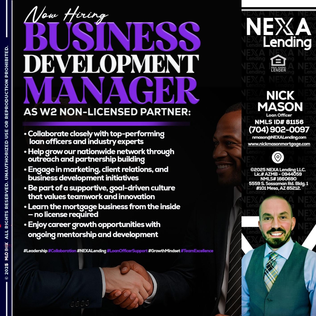 NOW HIRING - Nick Mason -Loan OfficerHi, my name is Nick Mason. I’m a Loan Officer with NEXA Mortgage LLC., offering personalized mortgage solutions, fast customized quotes, great rates and service with integrity.