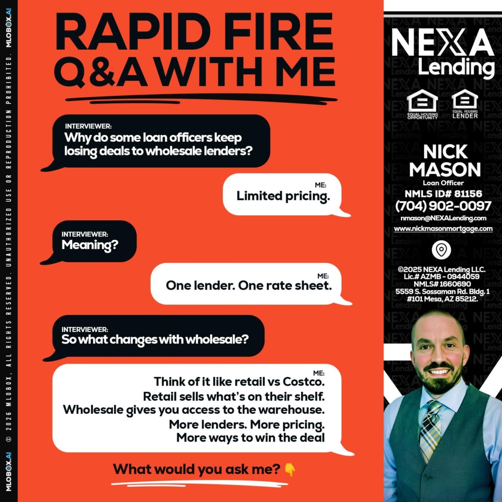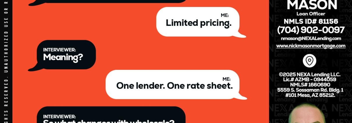 Hi, my name is Nick Mason. I’m a Loan Officer with NEXA Lending LLC., offering personalized mortgage solutions, fast customized quotes, great rates and service with integrity.