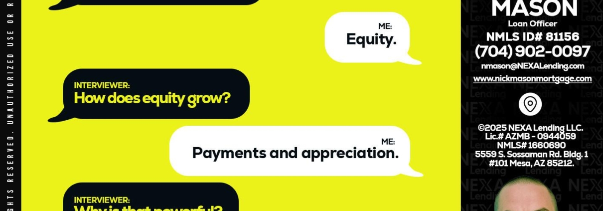 Hi, my name is Nick Mason. I’m a Loan Officer with NEXA Lending LLC., offering personalized mortgage solutions, fast customized quotes, great rates and service with integrity.
