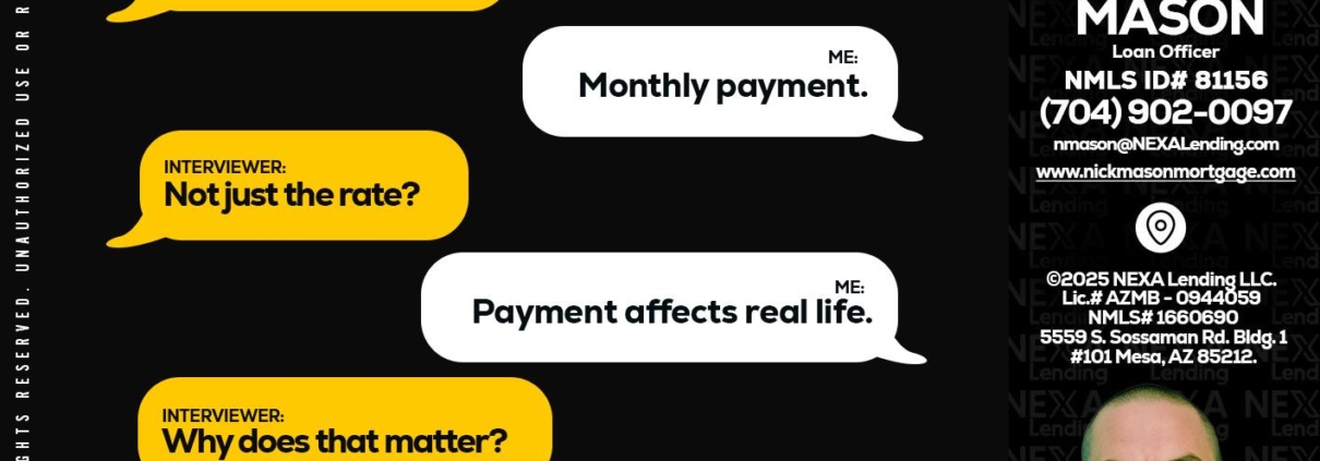 Hi, my name is Nick Mason. I’m a Loan Officer with NEXA Lending LLC., offering personalized mortgage solutions, fast customized quotes, great rates and service with integrity.