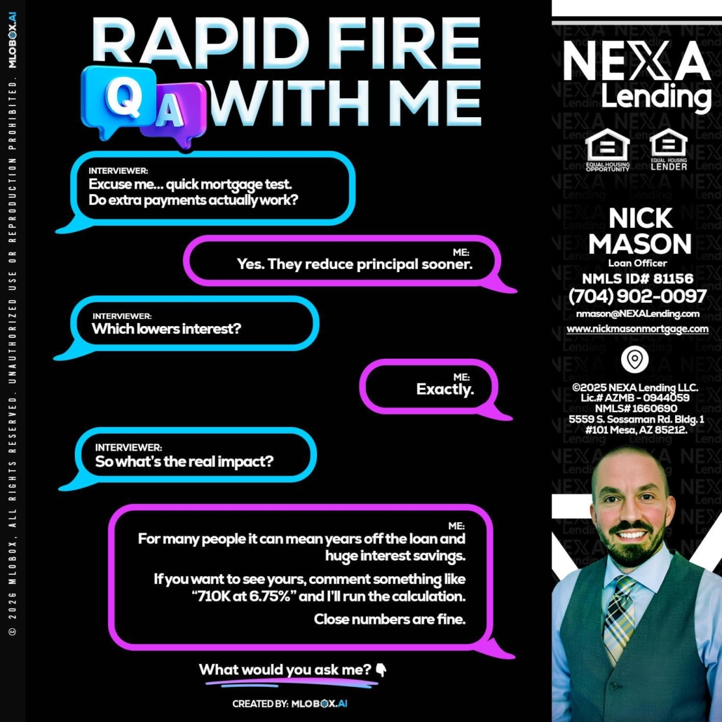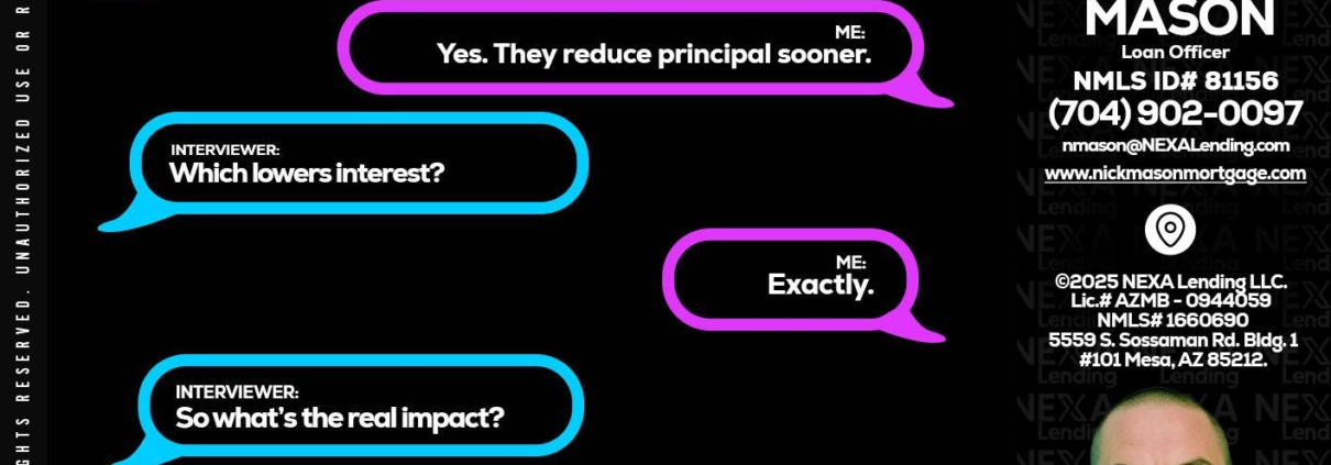 Hi, my name is Nick Mason. I’m a Loan Officer with NEXA Lending LLC., offering personalized mortgage solutions, fast customized quotes, great rates and service with integrity.