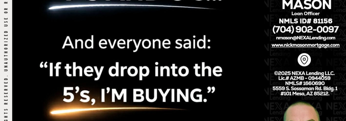 Hi, my name is Nick Mason. I’m a Loan Officer with NEXA Lending LLC., offering personalized mortgage solutions, fast customized quotes, great rates and service with integrity.