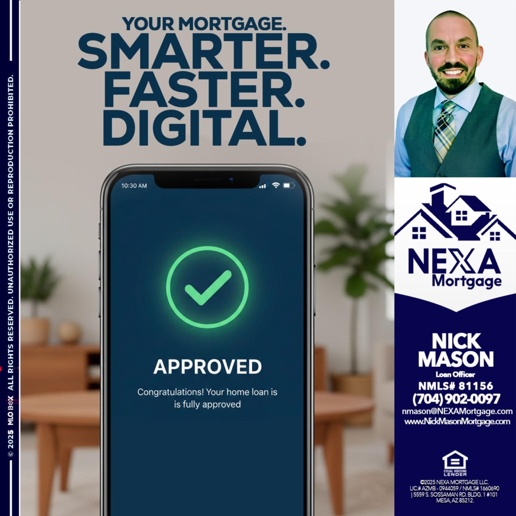 Hi, my name is Nick Mason. I’m a Loan Officer with NEXA Mortgage LLC., offering personalized mortgage solutions, fast customized quotes, great rates and service with integrity.