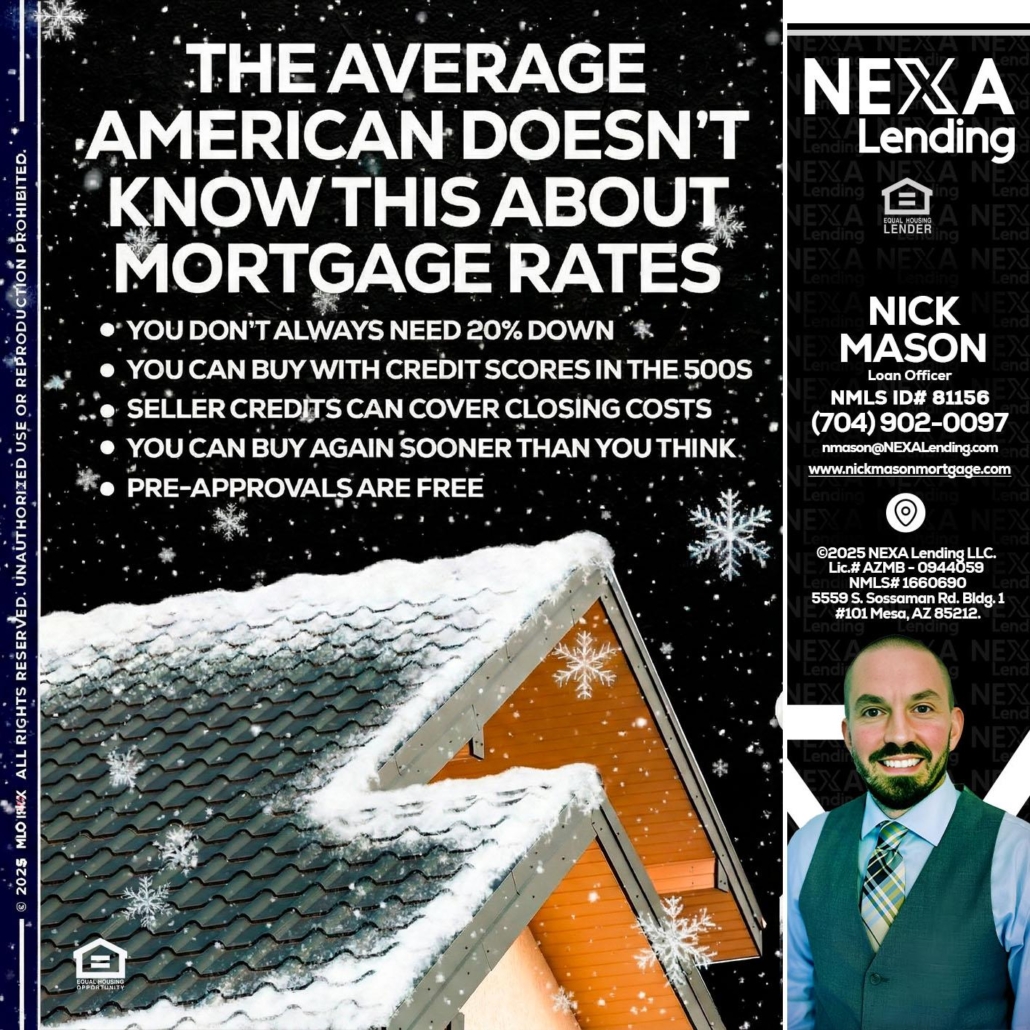 Hi, my name is Nick Mason. I’m a Loan Officer with NEXA Lending LLC., offering personalized mortgage solutions, fast customized quotes, great rates and service with integrity.
