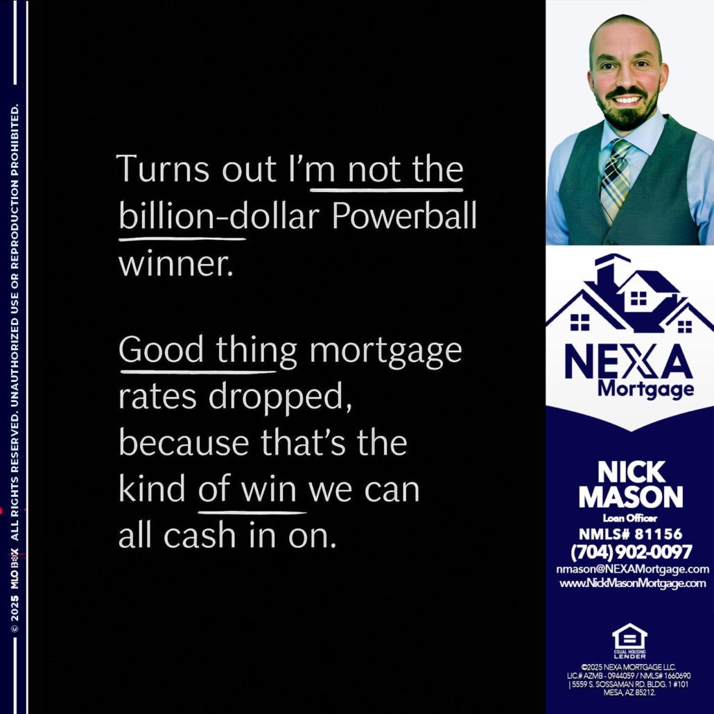 Hi, my name is Nick Mason. I’m a Loan Officer with NEXA Mortgage LLC., offering personalized mortgage solutions, fast customized quotes, great rates and service with integrity.