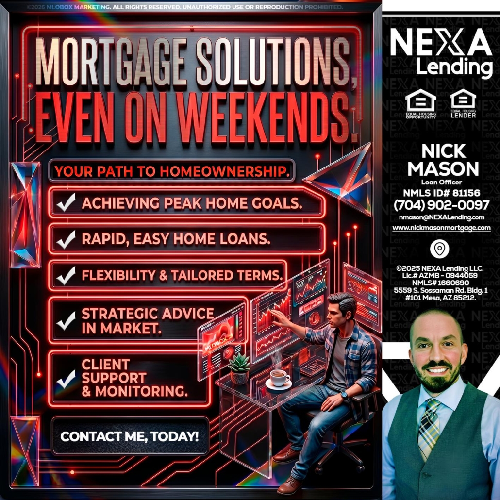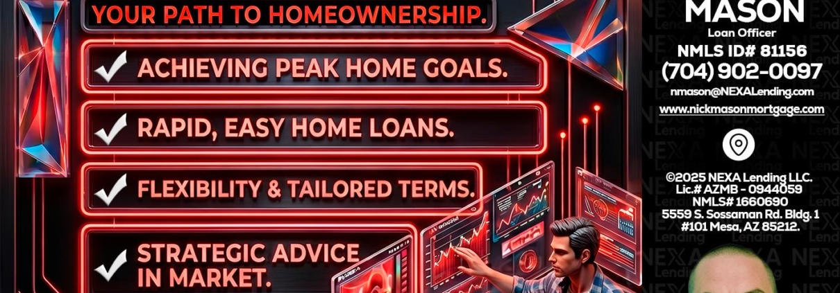 Hi, my name is Nick Mason. I’m a Loan Officer with NEXA Lending LLC., offering personalized mortgage solutions, fast customized quotes, great rates and service with integrity.