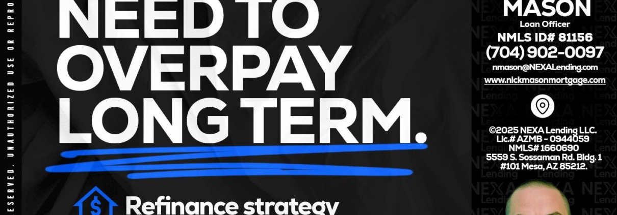 you don't need - Nick Mason -Loan OfficerHi, my name is Nick Mason. I’m a Loan Officer with NEXA Lending LLC., offering personalized mortgage solutions, fast customized quotes, great rates and service with integrity.